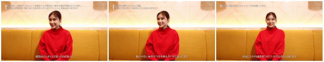 芳根さんへのインタビュー動画も、本編動画とあわせてWeb上で公開。撮影の感想やお気に入りのニットのカラー、芳根さんの最近のお気に入りのアイテム、今年のうちにやっておきたいことなどについて語っています。