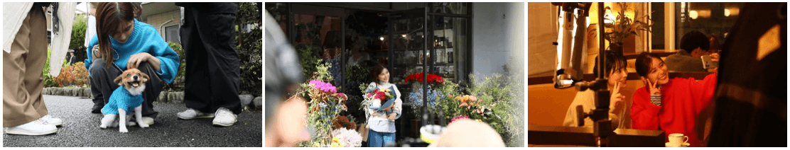 今回は2日間の撮影だったんですけど、いろんな場所に行って、ムービーとしても充実感のある、濃い1本になっているんじゃないかなと思っています。前回のムービーでもご一緒させてもらった、ワンちゃんのハーツくんと今回もご一緒させてもらって、とってもお利口な子なので、空き時間もペトってくっついててくれるんですよ。それがすごく可愛くて、また会えて嬉しかったです。