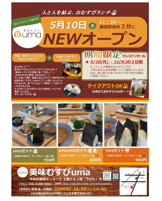 新感覚!握りたておむすびとスープカレーの組み合わせ!「美味むすびuma」が5月10日銀座にグランドオープン!