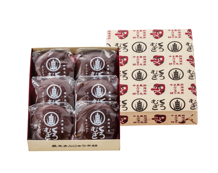 たっぷりの特製黒蜜を使用した生地に熱海の縁起物である「麦こがし」を練りこみ、低温でじっくり蒸しあげました。しっとりモチモチとした食感と麦こがしの香ばしさが美味しい、熱海生まれの温泉まんじゅうです。樹齢2,000年を超える大楠があり日本屈指のパワースポットとされる熱海・來宮神社への奉納菓子です。