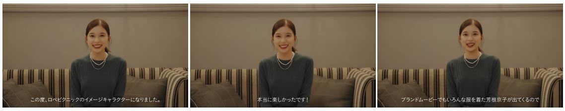 みなさん、こんにちは。芳根京子です。この度、ロペピクニックのイメージキャラクターになりました。撮影では、ロペピクニックさんのお洋服をたくさん着ることができて、本当に楽しかったです!ブランドムービーでもいろんな服を着た芳根京子が出てくるので、是非見てください!この秋は私と一緒にロペピクニックの服を着て、おしゃれを楽しみましょう!
