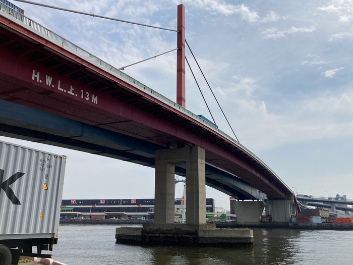 摩耶大橋は、当時前例のない1本主塔の斜張橋であり、摩耶埠頭と新港突堤を結んで、神戸港の発展に寄与した貴重な現役の土木遺産です。