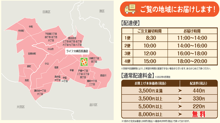 “おいしい” “ワクワク” “ハッピー” をお届けするライフコーポレーションは、7月12日(水)より大崎百反通店で「ライフネットスーパー」のサービスを開始しました。