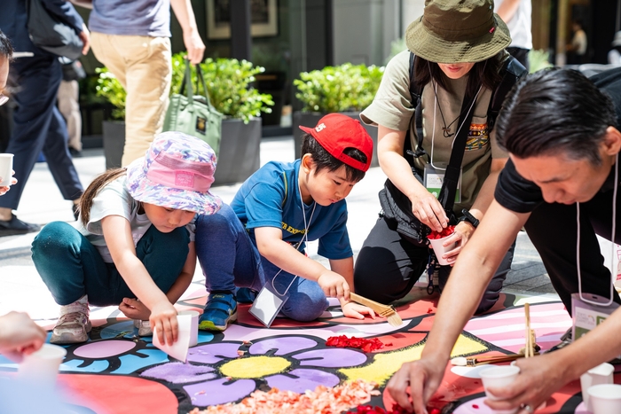 東京都は臨海副都心内のさまざまな施設をつなぐシンボルプロムナード公園において、現在大規模かつ連続性のある花の名所としての賑いを創出する「トウキョウ・フローラル・パサージュ2025」を開催、季節感のある花回廊を演出しています。その一環として、10月4日(土)・5日(日)の2日間、シンボルプロムナード公園 夢の広場において、25,000本のカーネーションを使い100㎡の大きな路上絵を描くアートイベント「インフィオラータ in お台場」を開催します。「インフィオラータ」は地面上に敷かれた下絵の上に、花びらや砂を使って絵を描くイベントで、その一番の醍醐味は参加者が制作を行い、みんなで力を合わせ大きな花絵を完成させることです。