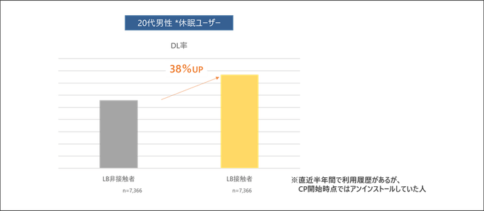 ◆20代男性の休眠ユーザーに限定した、アプリダウンロード率比較