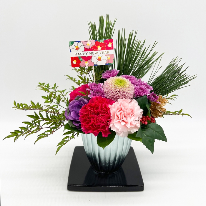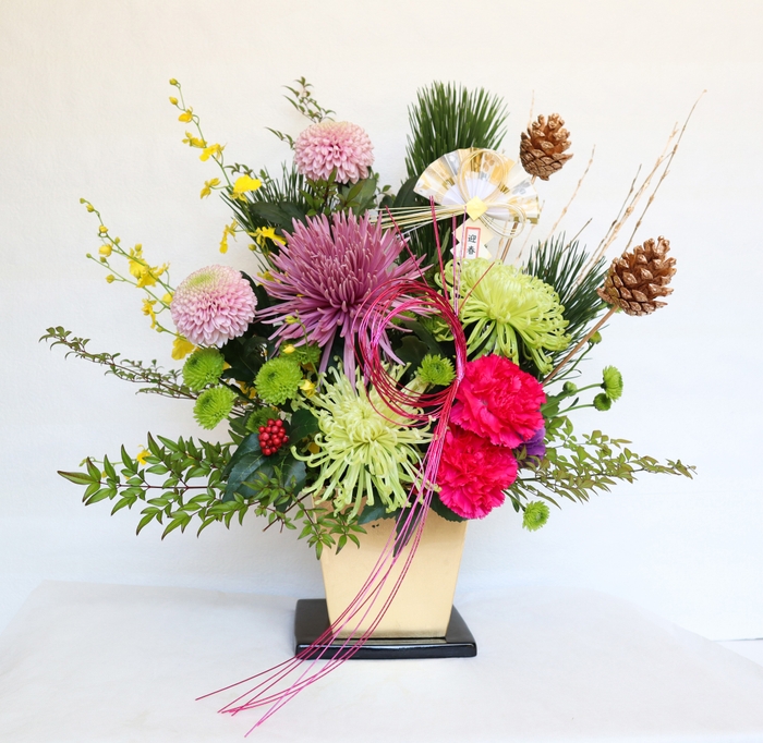お正月とは本来新しい年の神様(年神様)をお迎えし、家族揃って今年一年の幸せと無病息災を祈るおめでたい行事です。お正月にお花を飾るのは、年神様と新年のご挨拶に訪れたお客様を、きれいなお花とともにお迎えするおもてなしのため。