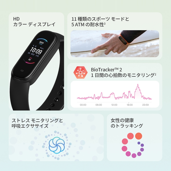 AMAZFITの日本正規代理店である株式会社アースリボーン(東京都千代田区/代表取締役社長 柏原晴馬)から、すでに5000個販売した超軽量かつコンパクトな「Amazfit band5」をご紹介