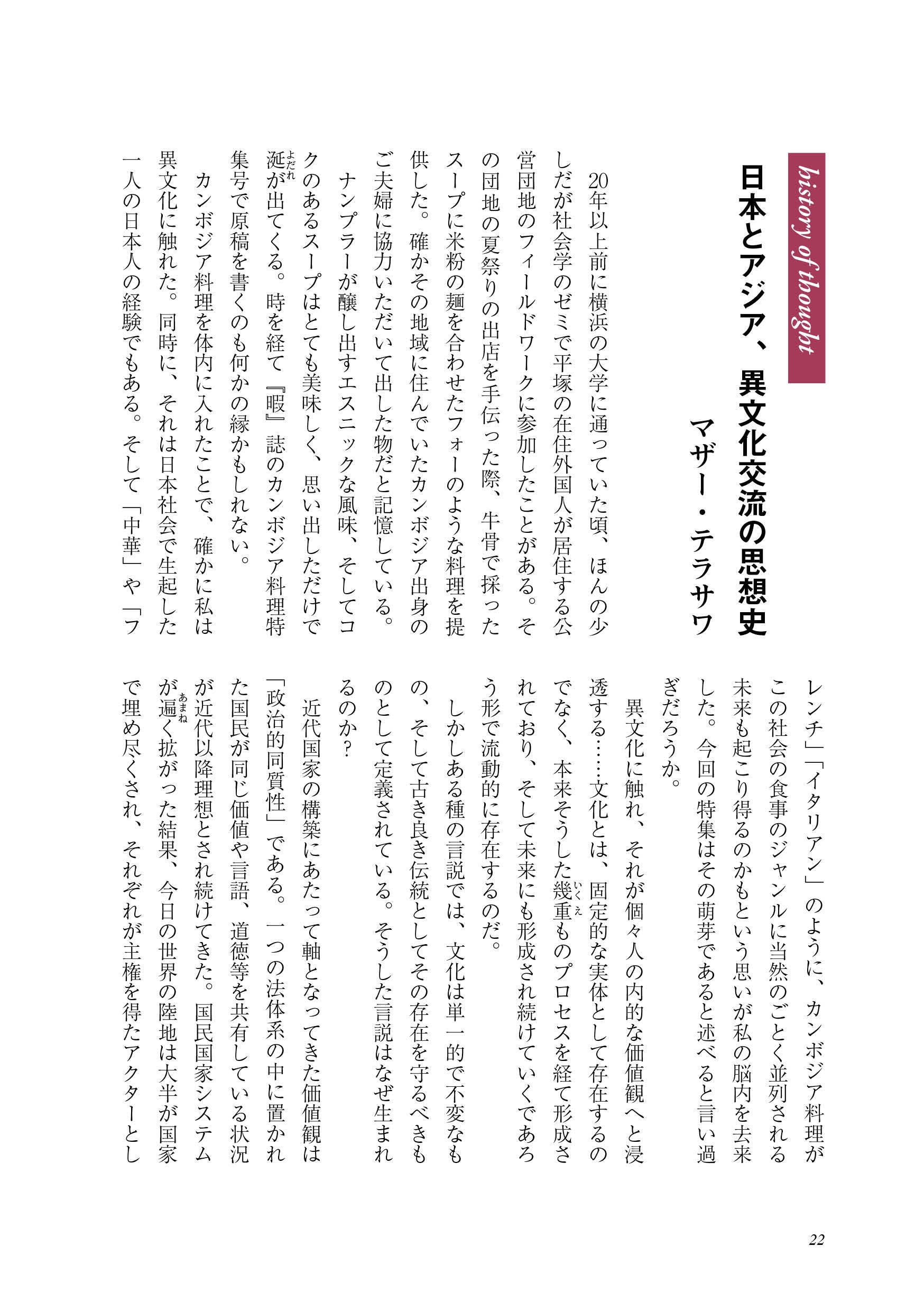 レシピ監修・浅見摩紀による最新カンボジアレポート、THE W 2024優勝のお笑いコンビにぼしいわしの伽説いわしさんの食にまつわるエッセイ、哲学芸人マザー・テラサワさんによる文化交流思想史の論文も掲載!