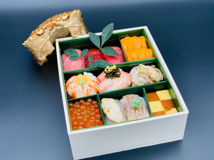 昨年はコロナ禍による一時閉店にも見舞われましたが、その分テイクアウトの充実に注力。「折箱を開けてから閉めるまで、最高の鮨経験をご提供すること」をテーマに、味はもちろん、折箱の材質や見た目のインパクトなど、徹底してこだわり抜いた一品に育ててまいりました。