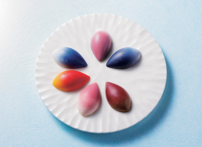 人工着色料を使わない自然の色味、ラズベリー、マンゴー、柚子、リンゴの甘酸っぱさや繊細な口どけ、香りをお楽しみください。