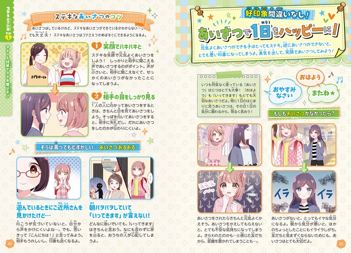 本書には、小学生女子に必要な一般常識からマナーまですべてが網羅されています。そして、その内容をマンガ仕立てで掲載することで、マンガ雑誌を読んでいるかのように読みやすく構成しています。