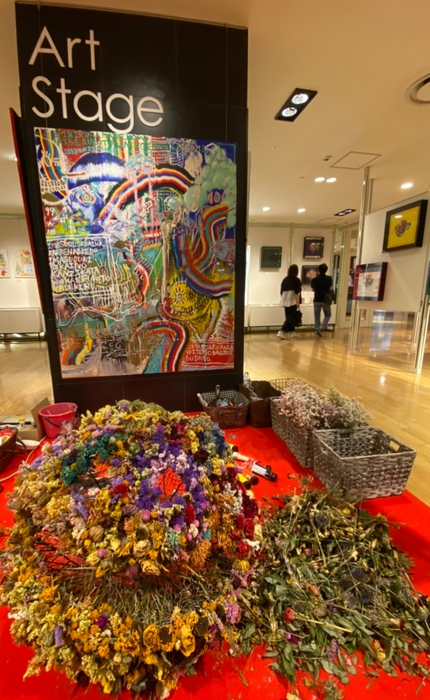 フラワーロスという社会課題にスポットライトを当て、アートの力でそれを表現する合同展示会「FLOWER LOSS, ARTist」(フラワーロス、アーティスト)に、花染花馥研究所が協力。 規格外として廃棄されてしまう花をご来場者にお配りする他、廃棄される花を用いたドライフラワーの提供や花の染料で染めたタペストリーを用いた会場装飾、およびハイライトとして週末に開催のライブイベントでは、参加アーティストの方々へこの度新たに開発した世界初のフラワーロスを原料に用いたフラワーインクを提供しこのイベントに協力しています。