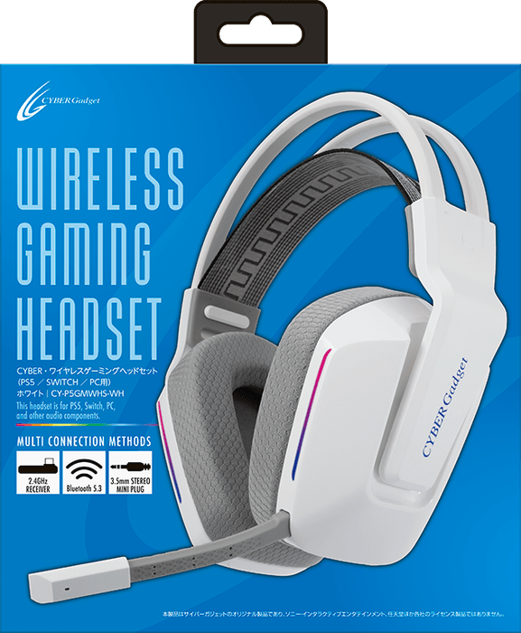 サイバーガジェットオンラインショップでは2025年7月現在、超低遅延・軽量・長時間再生可能な本格派ワイヤレスヘッドセット『CYBER・ワイヤレスゲーミングヘッドセット(PS5/SWITCH/PC用)』を発売中です。