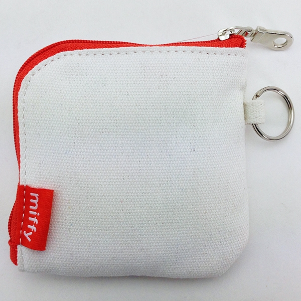 こちらはコインポーチです。100×100mmのコンパクトな正方形サイズで、持ち歩きにも便利。リング付きなので、バッグなどに取り付けることもできます。