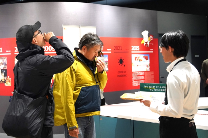 当日は、パビリオン内のプロモーションスペースに約400名の来場者をお迎えし、自社ブランド「京都蜂蜜酒醸造所」が手がける関西産はちみつ使用のミードをご試飲いただきました。多くの方に好評をいただき、来場者プレゼントとして用意した100セットの「スティックハニープラス 関西蜂蜜食べ比べセット」もすべて配布完了となりました。また、会場内にて実施したアンケートでは、回答者約350名のうち98%の方が試飲したミードを「美味しい」と回答。関西発の新しいお酒として、多くの方々に関心と期待を寄せていただける結果となりました。同万博では「いのち輝く未来社会のデザイン」をテーマに、ミツバチや蜂蜜にまつわる展示も多く、ミツバチの営みや蜂蜜といった自然由来の資源が密接に結びついていることを実感しています。金市商店では、今後も10月13日まで開催される万博と歩調を合わせ、蜂蜜やミードの魅力を国内外へ発信してまいります。