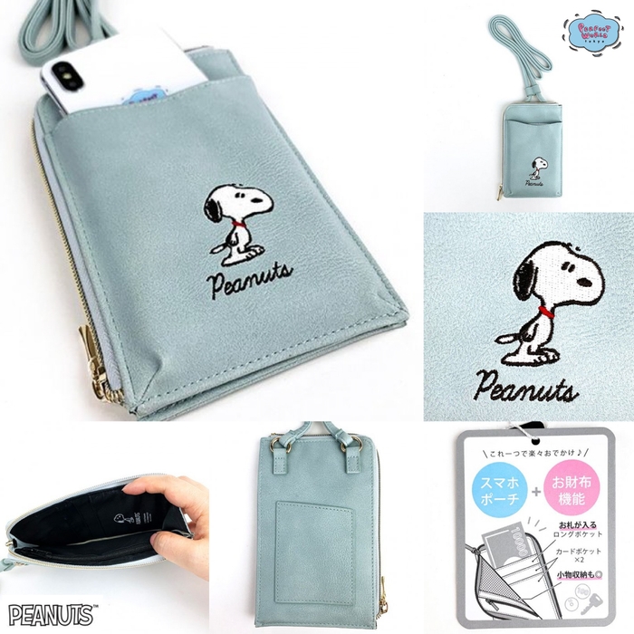 最近よく見かけるスマホショルダー、こんなにかわいいスヌーピーが刺繍されたアイテムはいかがでしょうか。