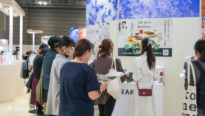 ハナミスイのグループ会社がある韓国、お取引先の中国からもスタッフが応援に駆けつけ、海外で展開している商品も陳列し、ハナミスイのグローバル展開をより深く知っていただく事ができました。