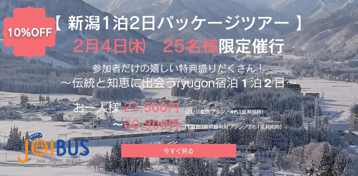 \5組様限定!お年玉キャンペーン/ 2月4日限定催行!新潟のツアーが10%オフ!