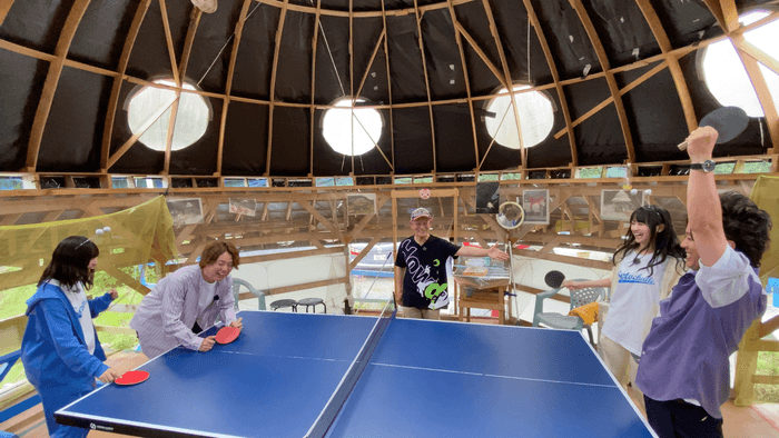 続いて「宇宙の駅」に舞台を移し、UFO内に設置された卓球台で「スペースピンポンバトル」に挑戦!