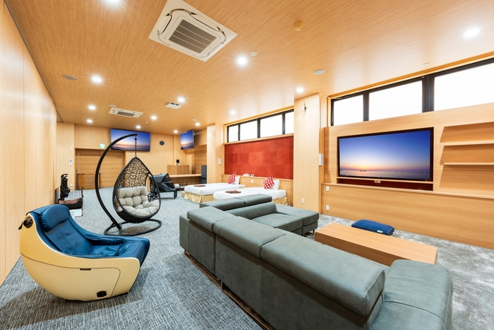・大型テレビ75型・金庫・エクストラベッド・マッサージチェア・ハンモック・ドライヤー・冷蔵庫・電気ケトル・空気清浄機完備・ワンちゃん用カート