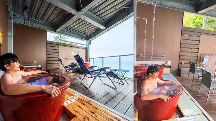 サウナ室のその先には、キンキンに冷えたおひとり様用の水風呂が海を見渡す絶景スポットに鎮座。