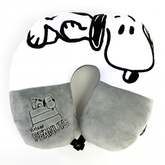 こちらは、スヌーピーのネックピローです。首に巻いて座ったまま仮眠をとることができるので、オフィスワーク時やドライブ、電車などでの移動時に大活躍。