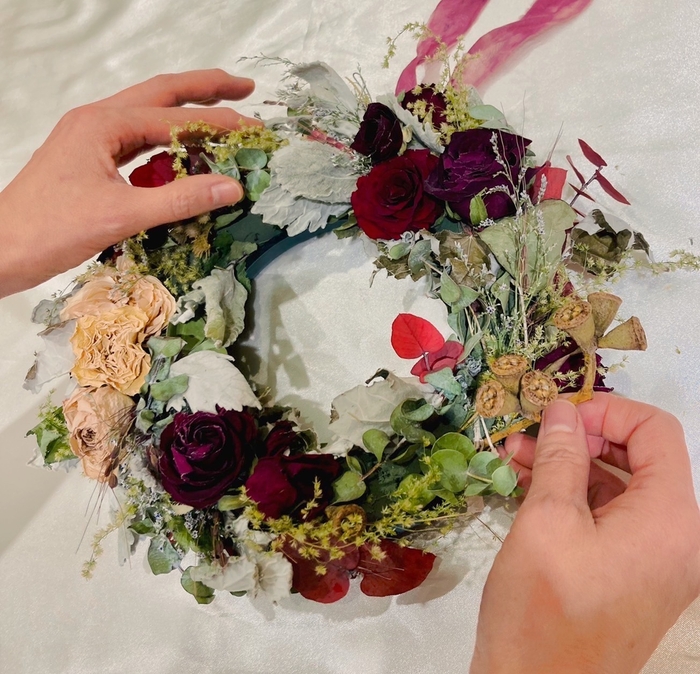 また完成後には、フラワーロスから生み出された『re:ROSE オリジナルルームフレグランス』をリースに纏わせ、温かい冬の室内で、まるで美しいバラ園でゆったりと時を過ごすような豊かな香りを楽しめるように。