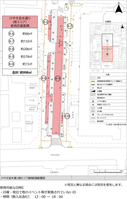 使用希望者は、けやき並木通りと府中スカイナード北口・南口(ペデストリアンデッキ)の指定のエリアを使用することが出来ます。