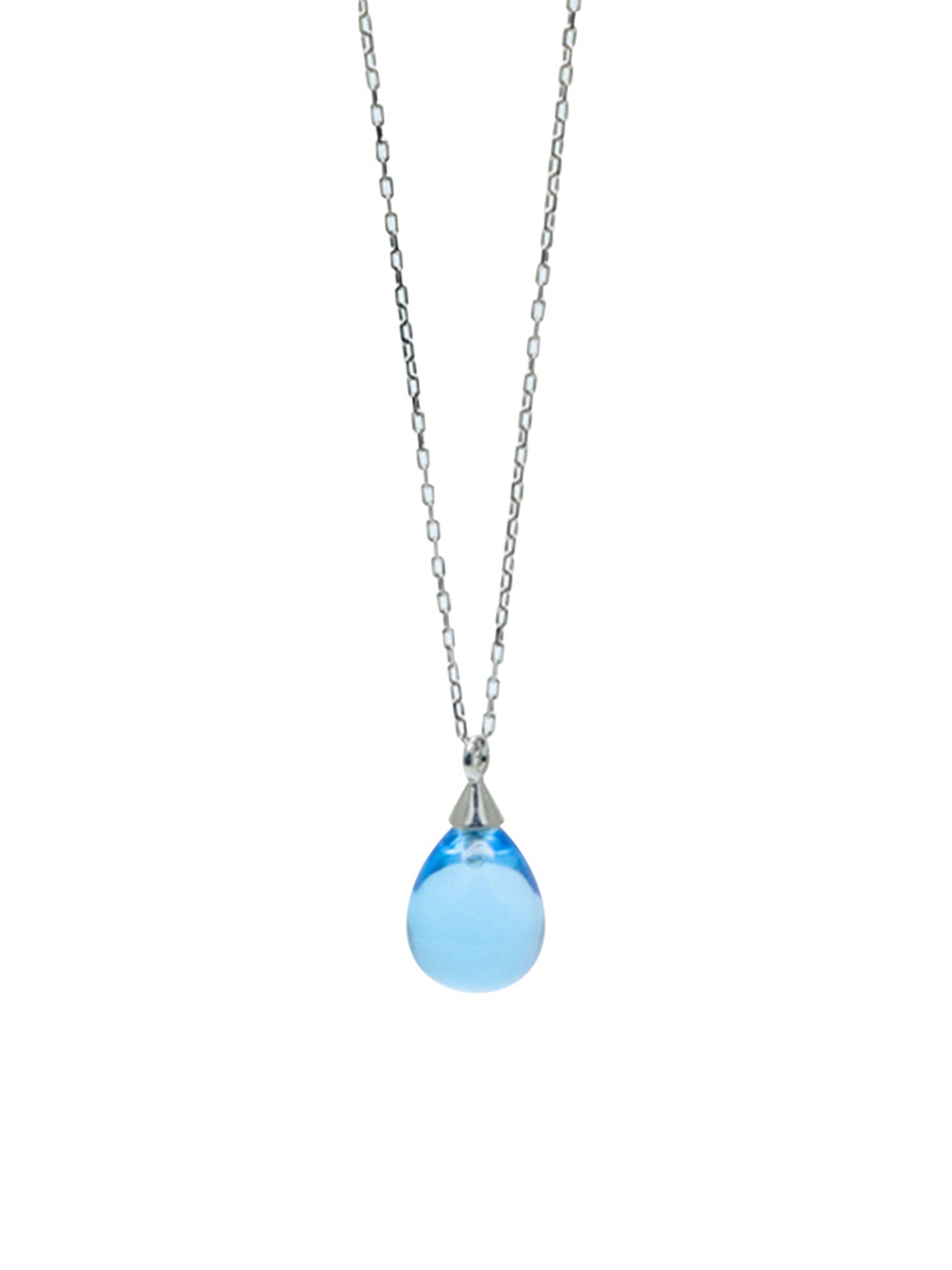 ぷっくりと豊満なブルートパーズの輝きは鮮やかな発色が美しい。チェーンにはスライド式のアジャスターが付いているから洋服に合わせてショートにも、ロングにも調整可能。
