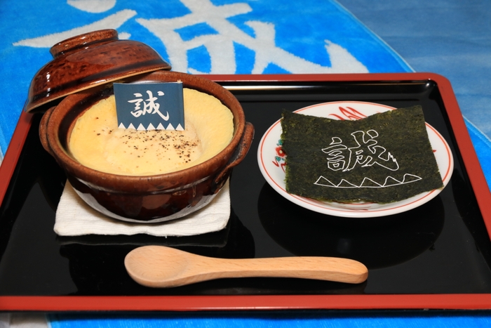 また映画村では原画の展示のほか、作品をイメージしたコラボメニューを提供します。インパクト抜群の青いスープのラーメンや近藤勇の好物「たまごふわふわ」などを召し上がっていただけます。また描き下ろしイラストを使用したオリジナルグッズも販売いたします。スタンプラリーを中心にコラボメニューや限定のコラボグッズなど、京都ならではのイベントとなっております。