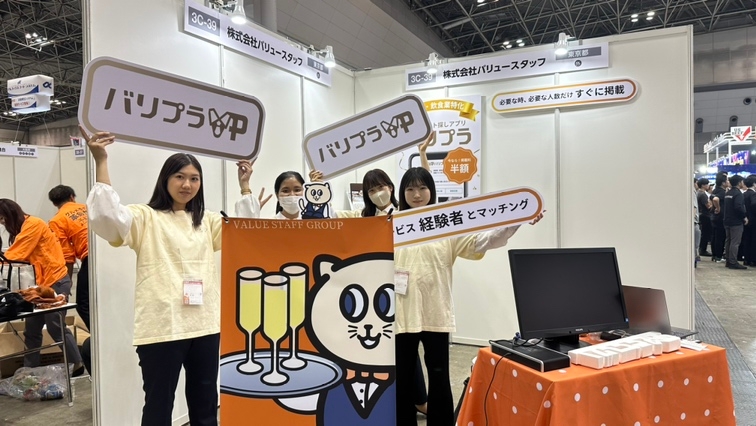 今回は、バリュースタッフが提供する飲食・接客業特化の単発アルバイト探し「バリプラ」のサービス認知・マーケット拡大を目的に、展示会に参加された飲食業や小売り業関係者の方々へサービスについて情報提供をさせていただきました。