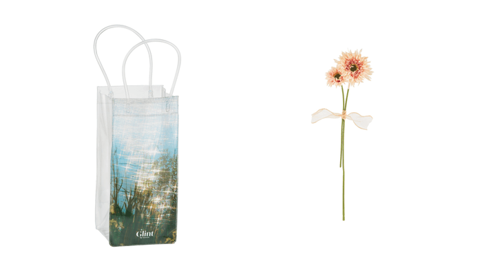 ▼グローリップバームギフトセット購入時、水光透明バック+ガーベラミニ花束をプレゼント