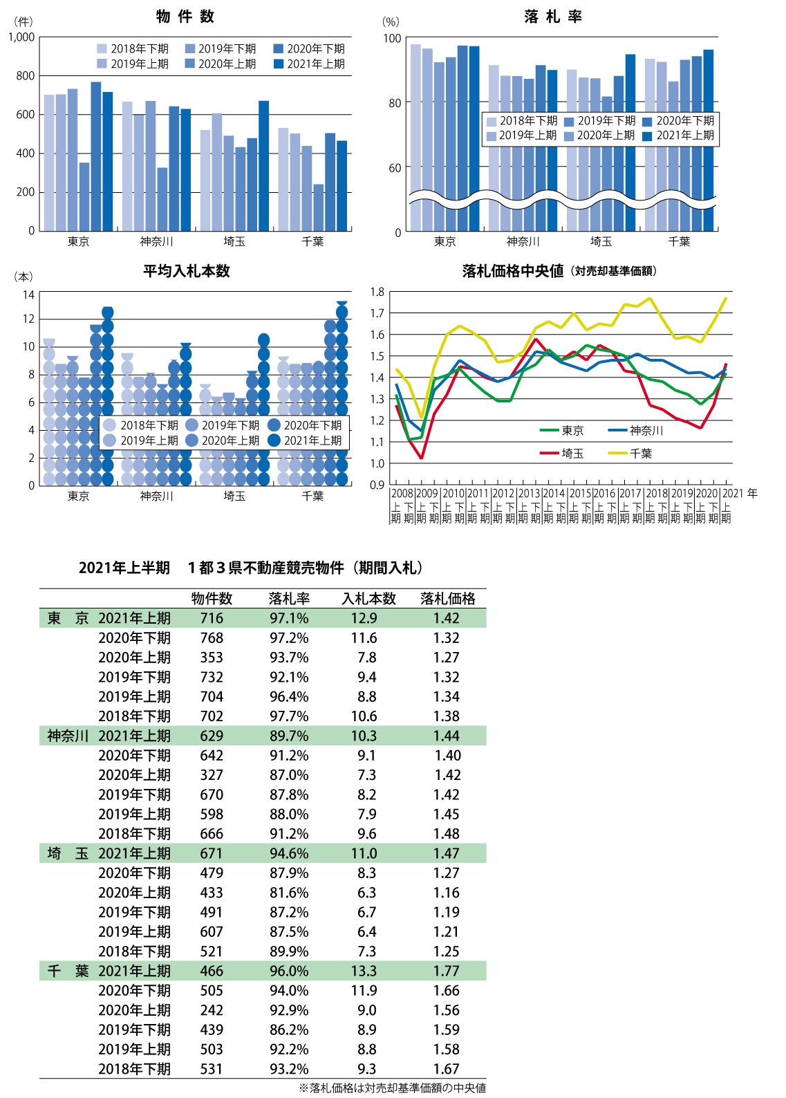 競売市場コロナ前と変化、入札本数が急増し価格も上昇 ~エステートタイムズが2021年上期の 1都3県不動産競売統計を発表~