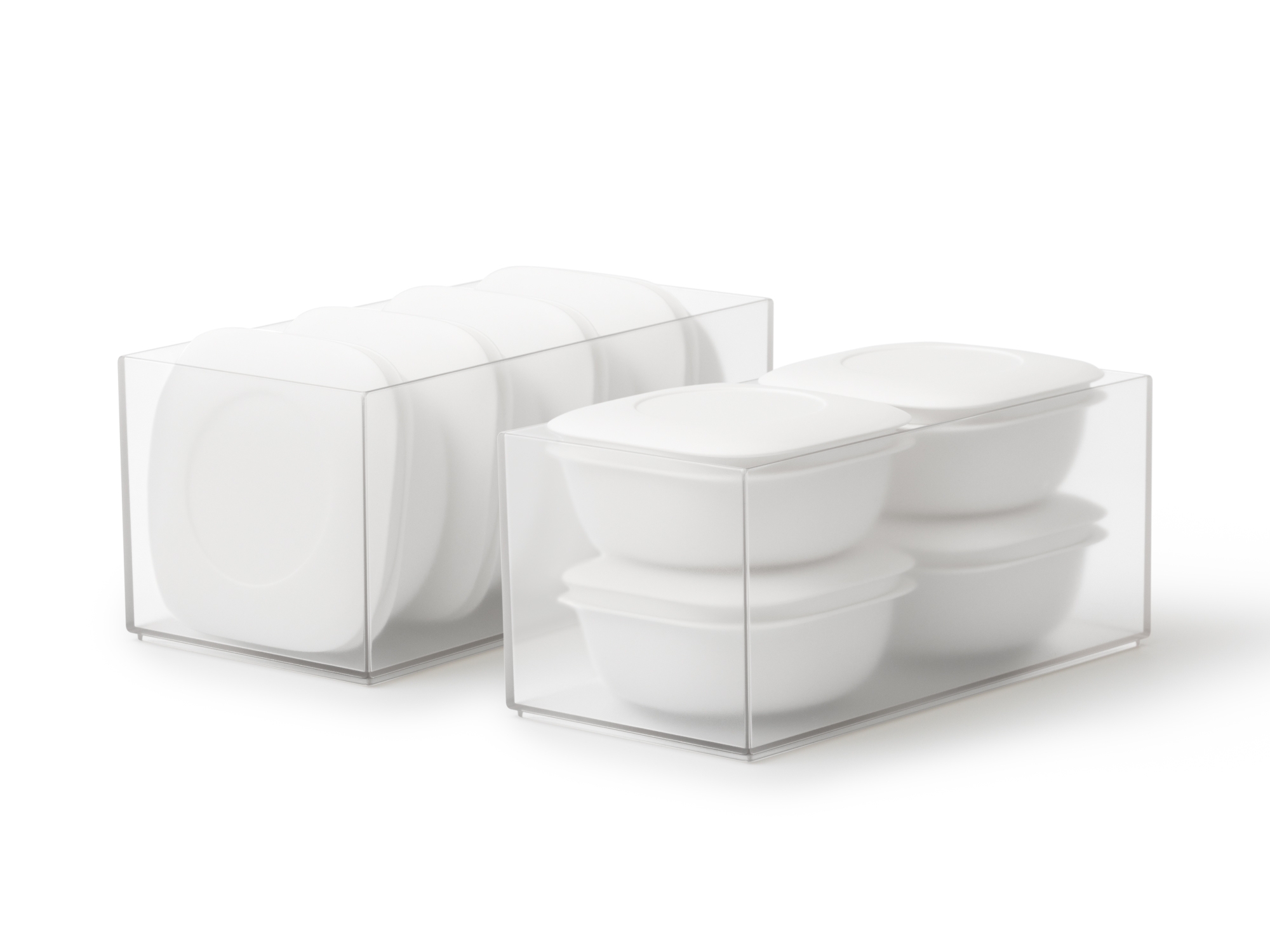 保存容器を4個収納できるボックスをご用意。収納ボックスとのセット販売も行います。