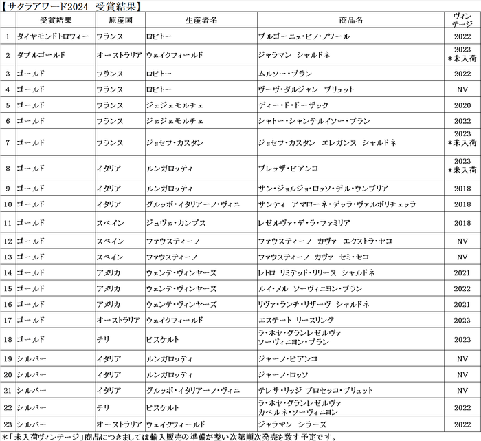『サクラアワード2024』にて明治屋直輸入ワインが ダイヤモンドトロフィー1品含む23品受賞! | NEWSCAST