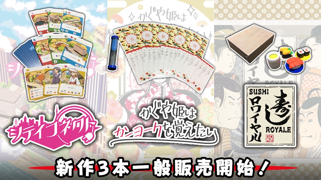 <新作アナログゲーム3作品>シティコネクト、 かぐや姫はカンヨークを覚えたい、 寿しロワイヤル、一般販売開始!