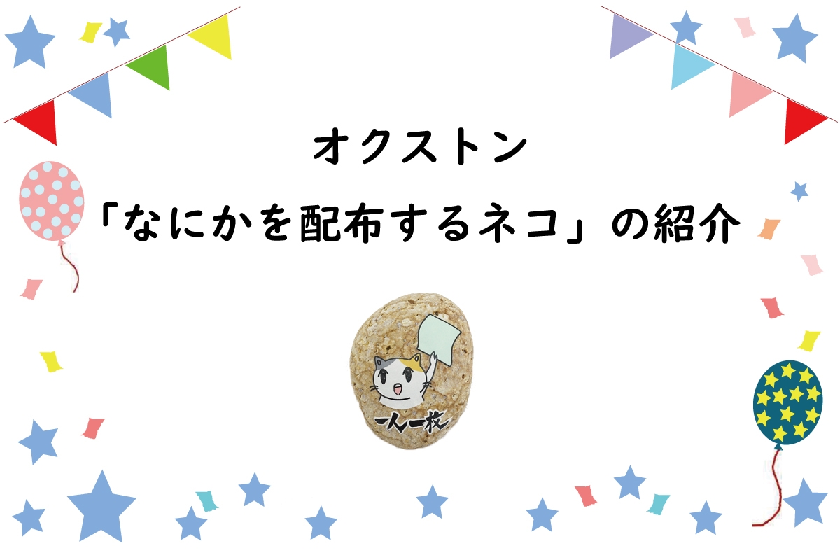 配布物の閲覧をお願いするオクストン「なにかを配るネコ」の紹介
