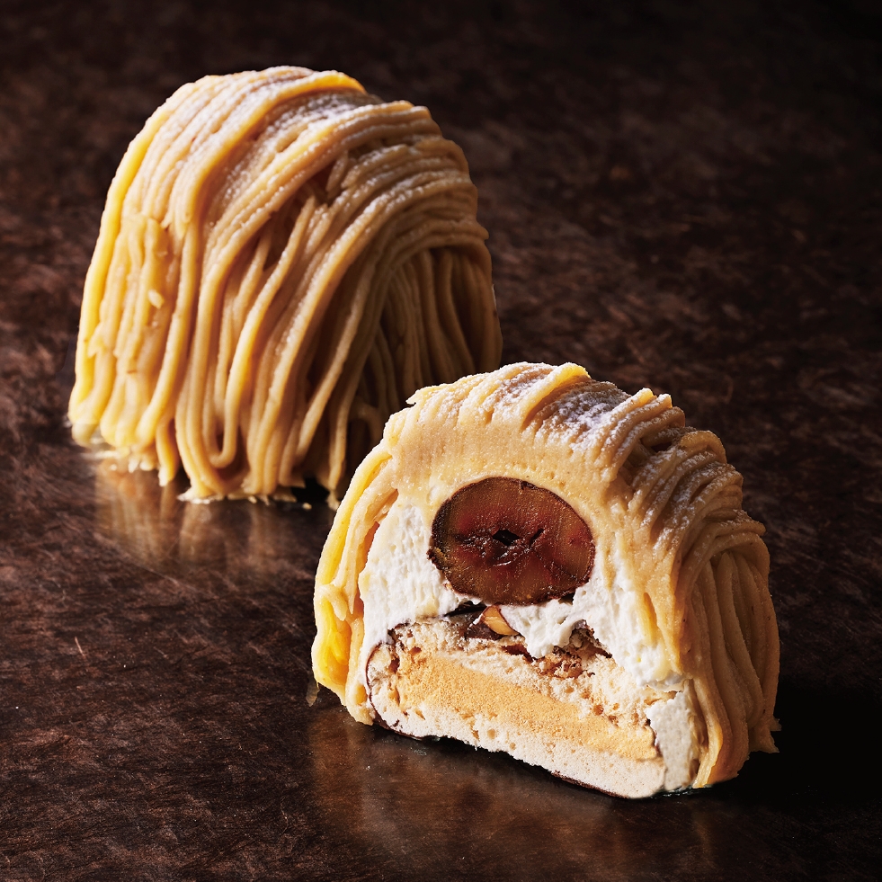 熊本県産の厳選されたマロンペーストを使用した濃厚で風味豊かなモンブランクリームをたっぷりと絞ったリッチな味わいが楽しめる逸品です。中には低温でじっくりと焼き上げチョコレートでコーティングしたサクサクのメレンゲ、アーモンド、生クリーム、熊本県産の栗の甘露煮を丸ごと入れました。和栗の味わいを存分に堪能できるこだわりのモンブランをぜひお楽しみください。