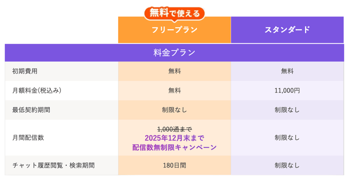 ※2025年12月末までフリープランの配信数無制限キャンペーンを実施中