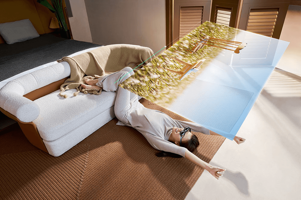 このARコンテンツをARグラスを用い、応用することでこれまでにない新しい「カタチ」でのコミック体験を可能にすることを目指したいという関係者の想いからプロジェクトが立ち上がりました。そしてより手軽に、今まで以上に作品への没入感や臨場感を感じていただき、より一層ユーザーの方々の生活のQOLを向上させていきたいといという考えに至りました。これにより、スマートフォンやVRデバイス以外にて体験することが可能となり、ARグラスを用いることで現実世界にContentsを投影し、リアリティ感や手軽さをさらに実現することができました。
