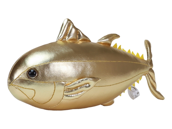 ハズレなしで、必ずぬいぐるみがもらえる「ぬいぐるみ マグロくじ」は、今年2月のオープン以来大人気の商品。ぬいぐるみの種類は、オリジナルマグロ(ブルー系の配色)およびカニとタコの3種でしたが、ついにめでたさ満載の「金のマグロ」がラインナップ。