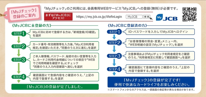 (ご登録方法は 「MyJCB」サイト https://my.jcb.co.jp/Login をご参照ください)