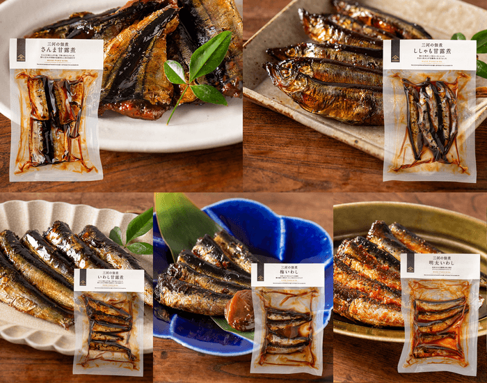 三河の佃煮シリーズは、その名の通り愛知県の三河地方で作られた魚の佃煮です。もともと三河湾一帯は海産物も砂糖も豊富であり、醤油やみりんに恵まれた場所でした。まさに佃煮を製造するのに最適な場所ということもあり、こうした背景から三河地方では佃煮が名産品として根付いたといわれています。