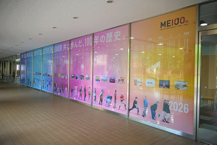 装飾は2026年度末まで実施予定です。学内装飾を通じて名城大学の歴史に触れ、次の100年に向けた大学の歩みを感じていただく機会となれば幸いです。