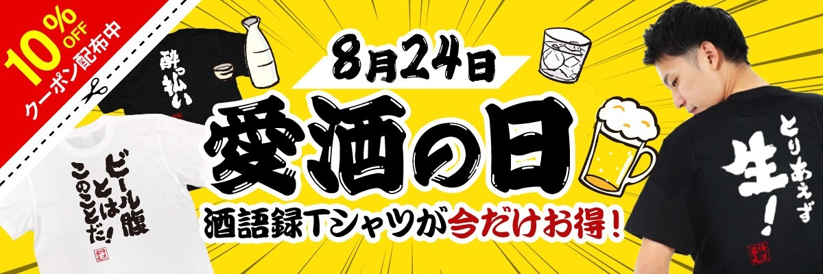 株式会社太陽(所在地:千葉県匝瑳市飯倉台28-11、代表取締役:片岡正徳)が展開する「おもしろTシャツの俺流総本家」では、8月24日(日)「愛酒の日」にちなんで、お酒好きの方が喜ぶ酒系語録Tシャツの期間限定セールを開催いたします。