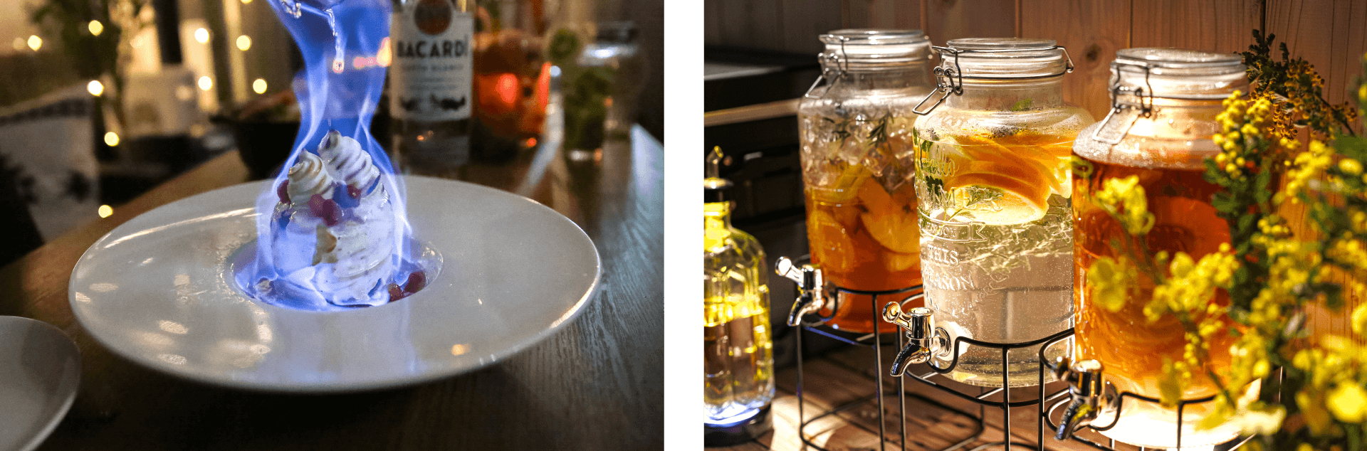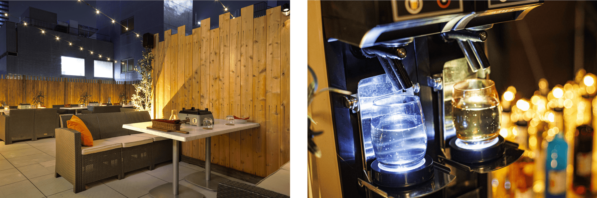 各種お飲み物はドリンクカウンターからフリーフローで自由にご利用いただけ、開放的な空間でBBQとビアガーデンを楽しみながらラグジュアリーなひと時をご提供いたします。