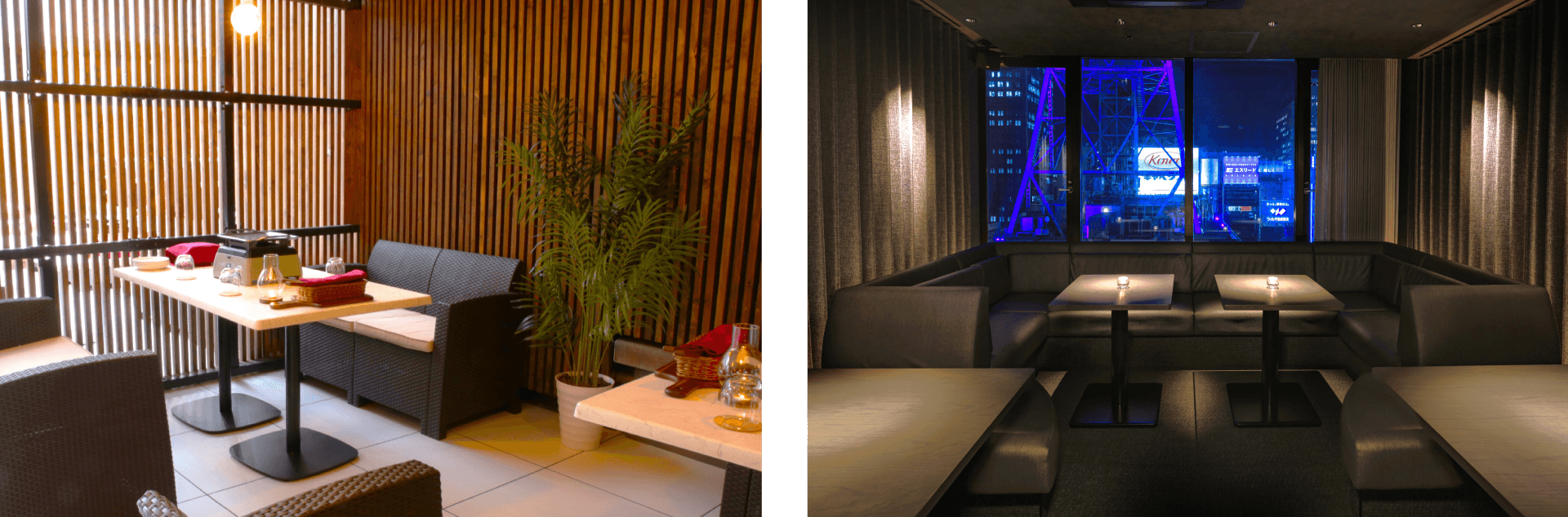お席は全席ソファ席でゆったりとした空間をご用意、夏の夜風とイルミネーションをリラックスしてお過ごしいただけます。