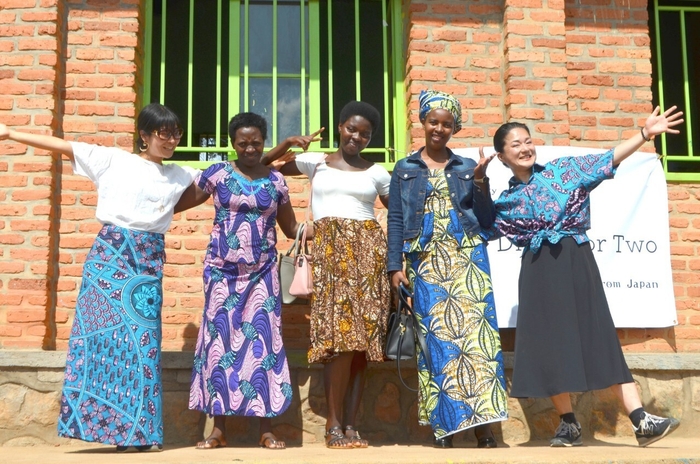 ブランドの最大の魅力は、ひとつのキテンゲを日本、そしてルワンダの人たちと「はんぶんこ」するシステムにあります。キテンゲは1枚のサイズが約5.5メートルと大きく、一人では使いきれないことがしばしば。キテンゲを二人で「分かち合う」ことで、おしゃれする喜びをもシェア、同じ布を選んだ人同士を、海を越えてつなげたいと考えています。