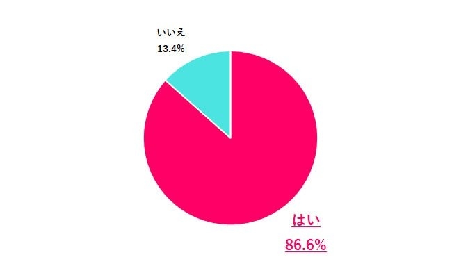 趣味はあるか聞いたところ、「はい」86.6%「いいえ」13.4%で、趣味がある人が大多数という結果になりました。
