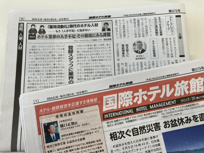 【メディア掲載】宿泊業界ための経営情報紙『国際ホテル旅館』8/20号に、取締役COO・西谷の連載記事が掲載されました!